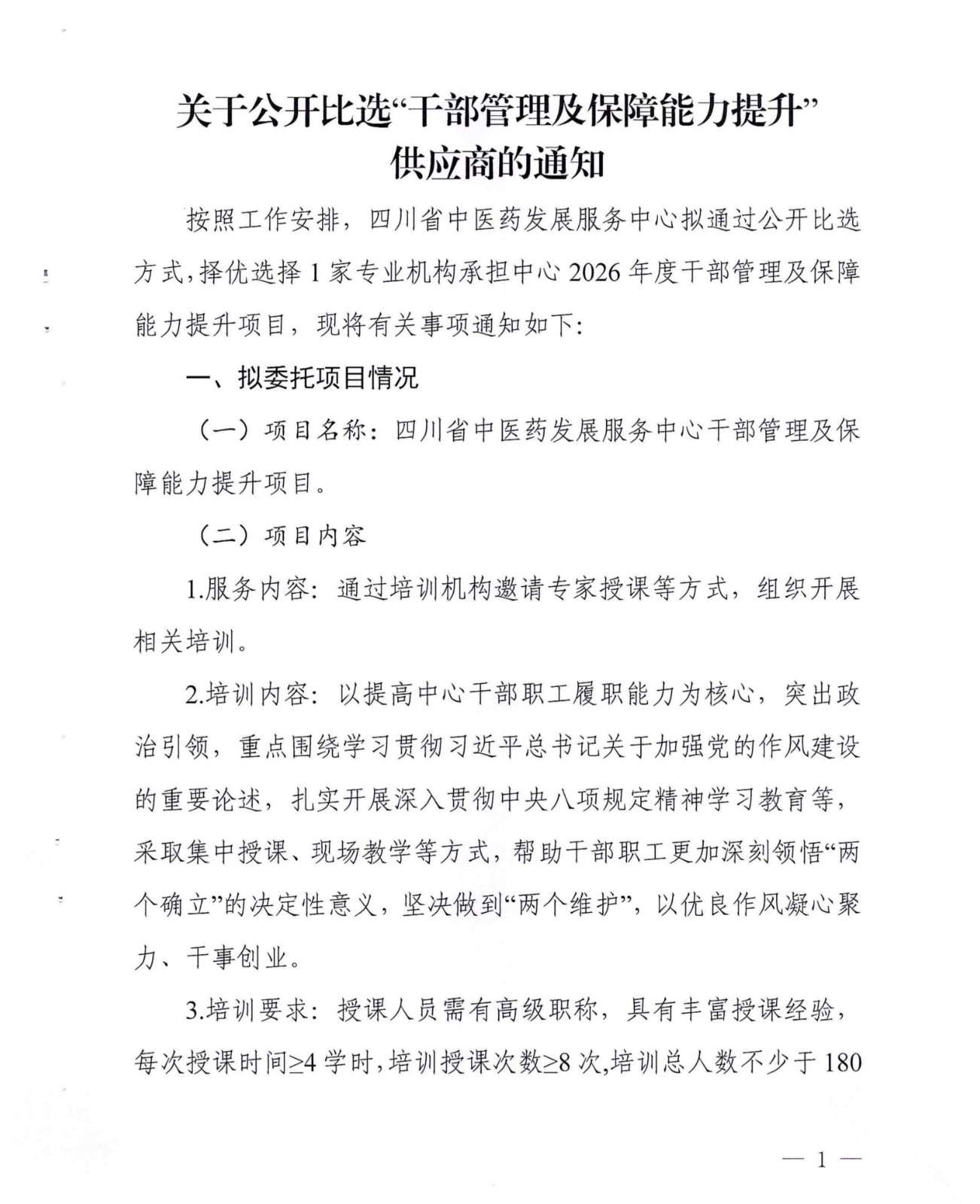 关于公开比选“干部管理及保障能力提升”供应商的通知